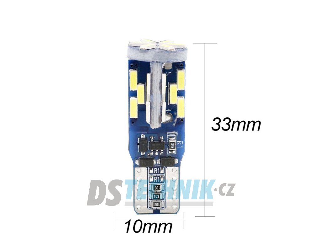 Autožárovka LED 2x T10 W5W 4014-30 Can Bus je vybavena paticí T10 W5W. LED autožárovka s předním svitem je osazena 30x LED čip SMD4014 nové generace s vysokou účinností světla a výkonu. Tato žárovka LED má velmi dlouhou životnost až 50 000hod. a to i při otřesech vozu, častém zapínání a vypínání. To je velmi velká výhoda oproti klasickým žárovkám. Barva svitu autožárovky je bílá a chromatičnost 5500 - 6000K a světelný výkon je 300lm.