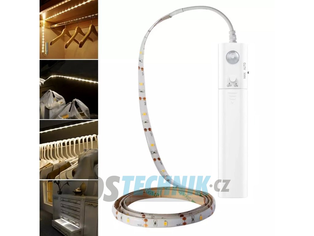 LED KNM 2M PIR ZD94A-AKU - 2m dlouhý světelný pásek s pohybovým čidlem, napájení na baterie 4xAAA