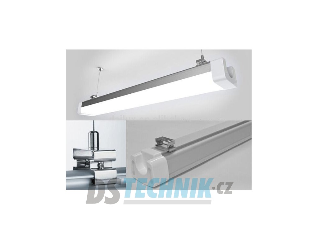 Celohliníkové lineární svítidlo s krytím IP66 s technologií LED SMD2835 a s opálovým plastovým krytem. LED čipy jsou uloženy na hliníkové desce - chladiči celoplošně. Tím se využívá pro chlazení celé svítidlo. Prodlužuje to životnost LED čipů SMD a svítidlo může být instalováno v teplotně náročnějších podmínkách. Svítidlo má krytí IP66 a je proto vhodné pro instalace do náročných vlhkých provozů, exteriérů i výrobních hal s prašným prostředím. Nemá stroboskopický efekt - při svitu nebliká. Je odolné proti vibracím, nárazům a je velmi lehké. Instalace svítidla: možnost uchycení svítidla na strop, na zeď pomocí dvou držáků. Po uchycení držáků na strop a zaklapnutí držáků do trupu svítidla můžete svítidlem posouvat než zajistíte uchycení šroubem v držáku. Svítidlo se dá také zavěsit pomocí lanek (lanka nejsou součástí svítidla - lze je doobjednat) a je také možné svítidla řadit do linie za sebou.