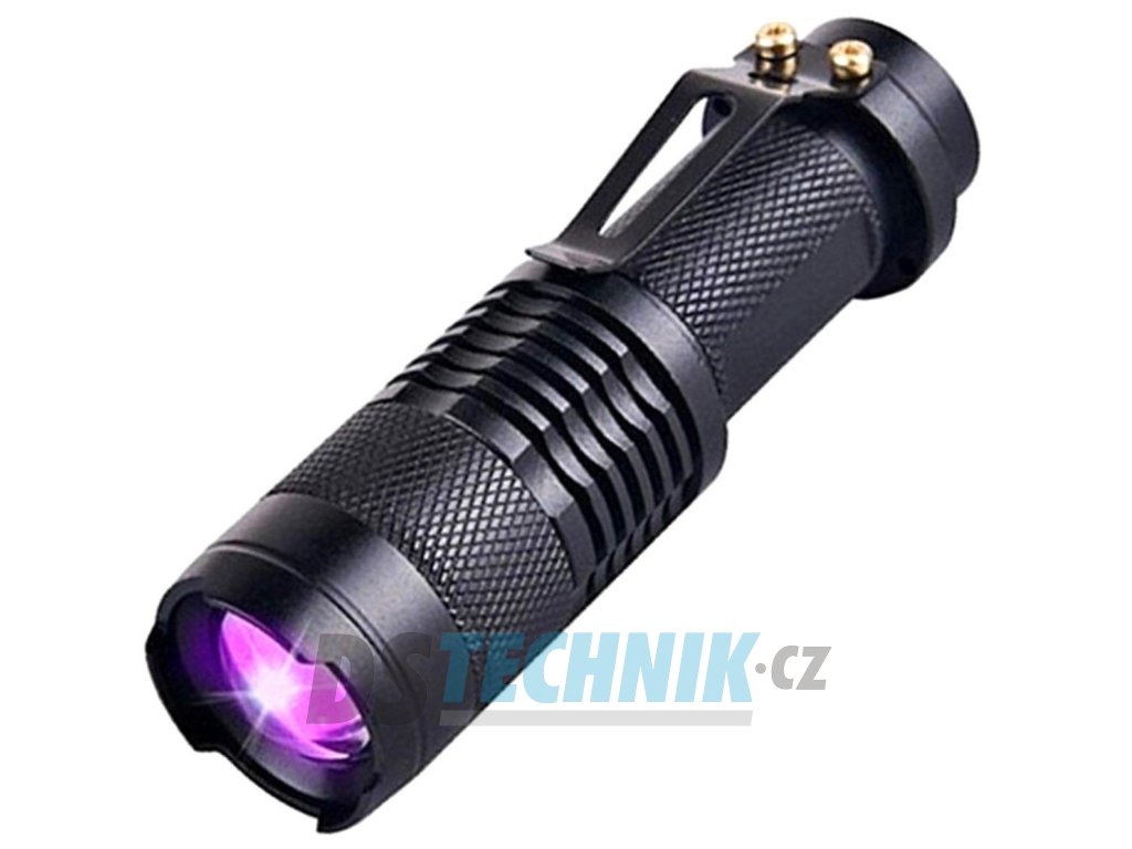 - Taktická svítilna s velmi výkonným světelným zdrojem - UV diodou s vlnovou délkou 395 nm.