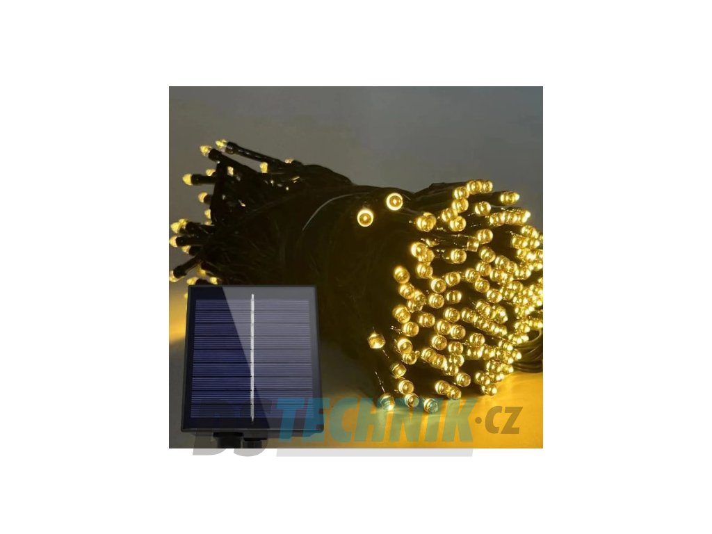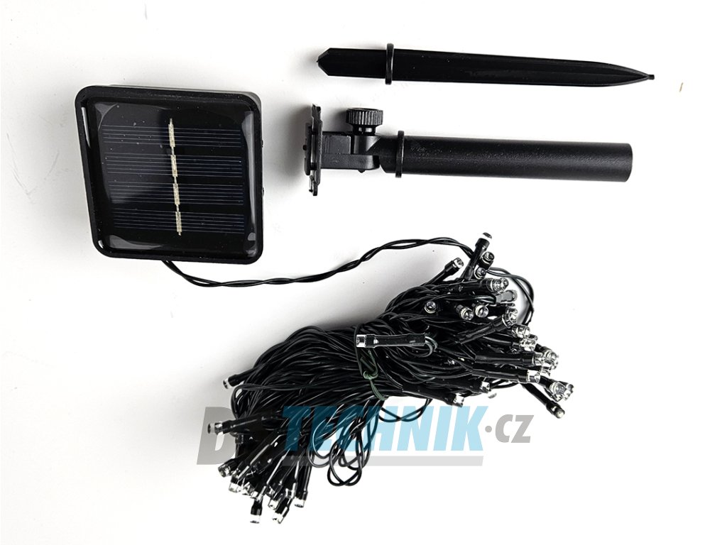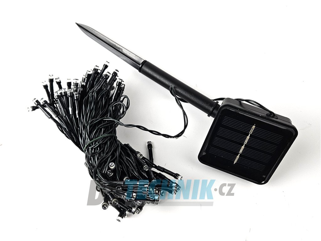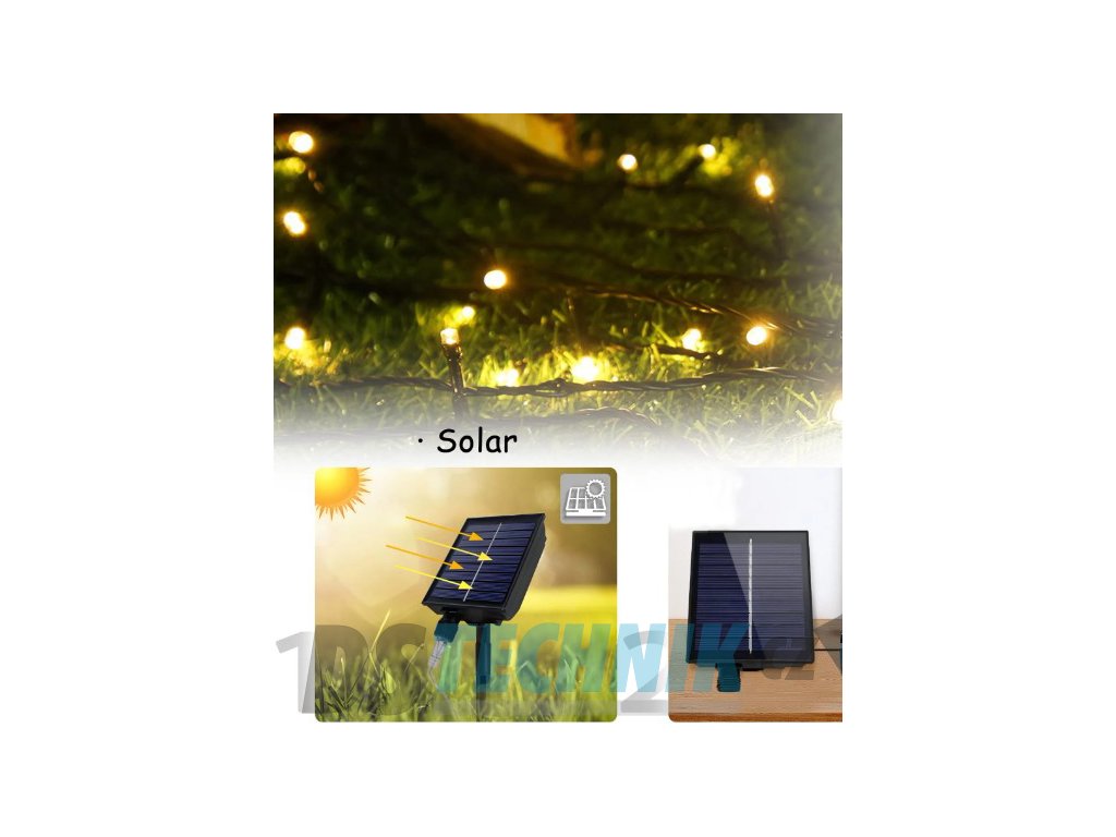 Dekorační led osvětlení - 10m vánoční světelný řetěz se solárním panelem pro venkovní použití se svitem bílá studení nebo bílá teplá, automatické večerní sepnutí a ranní vypnutí, možnost výběru z 8 světelných programů.