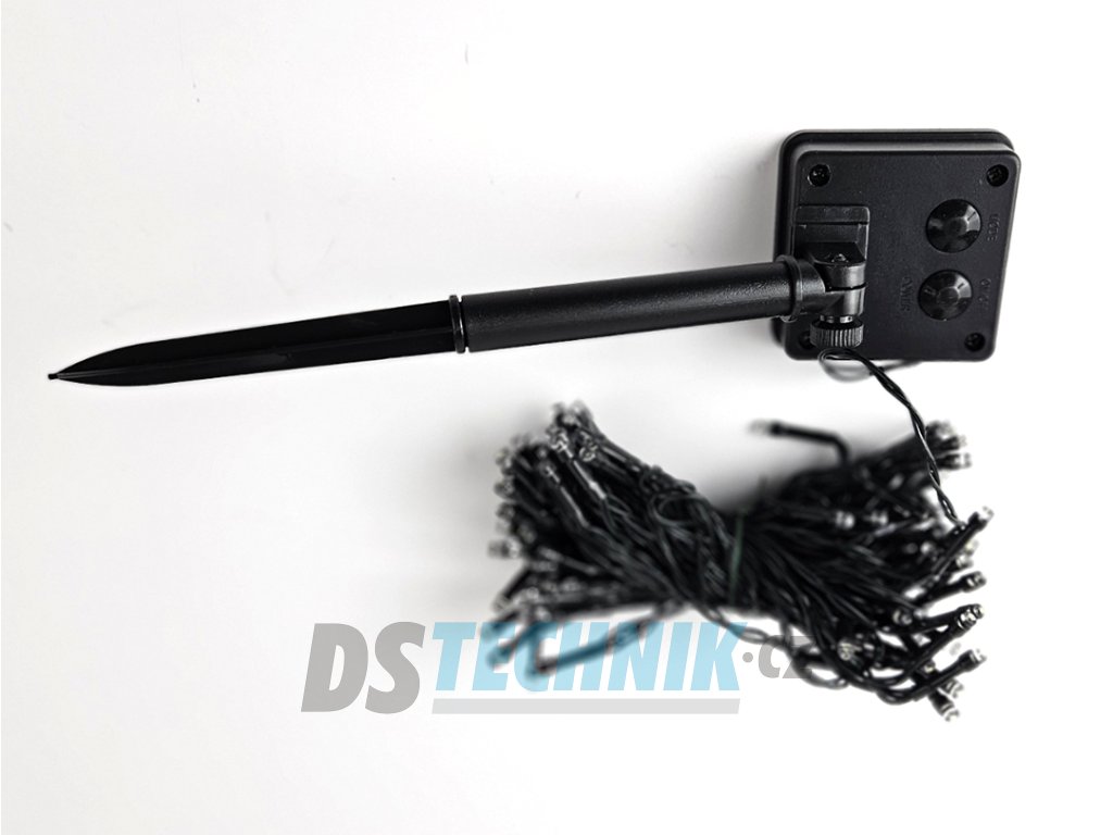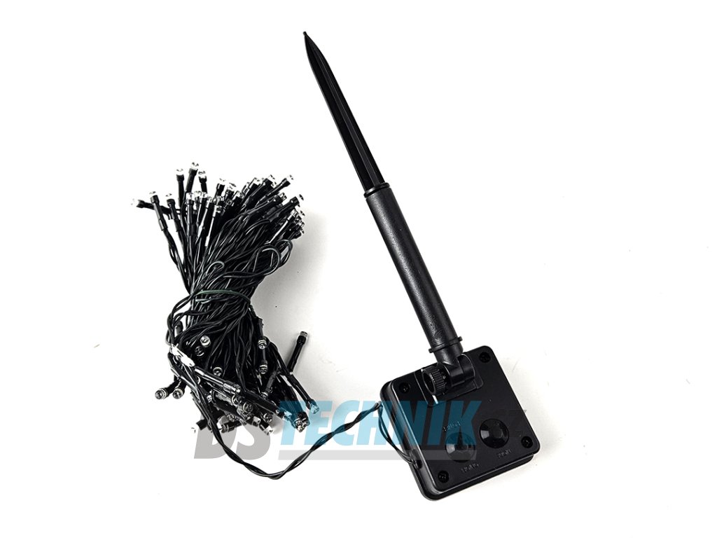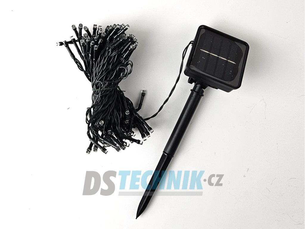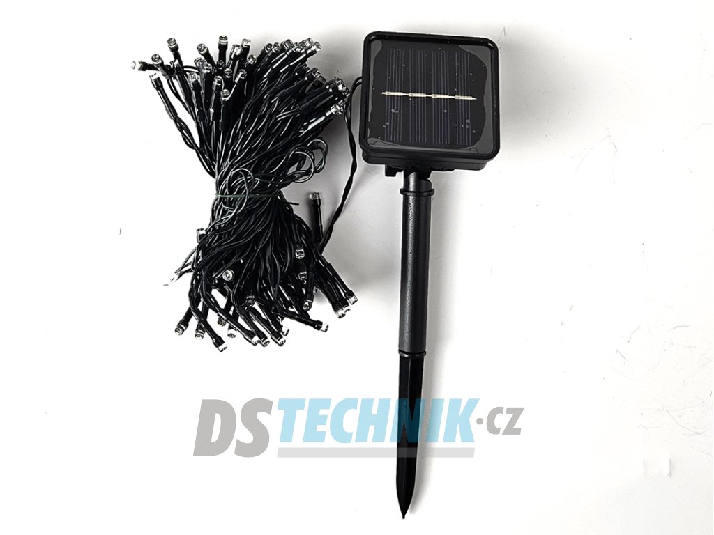 Dekorační led osvětlení - 10m vánoční světelný řetěz se solárním panelem pro venkovní použití se svitem bílá studení nebo bílá teplá, automatické večerní sepnutí a ranní vypnutí, možnost výběru z 8 světelných programů.