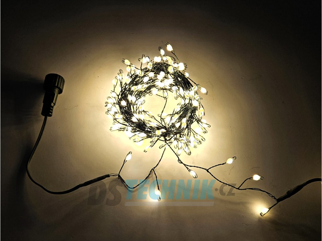 VOR 6M Girlanda - vánoční světelný drátový řetěz s 200x LED, délka 6m, venkovní IP44, černý drát, svit bílá studená a bílá teplá, 8 programů svitu