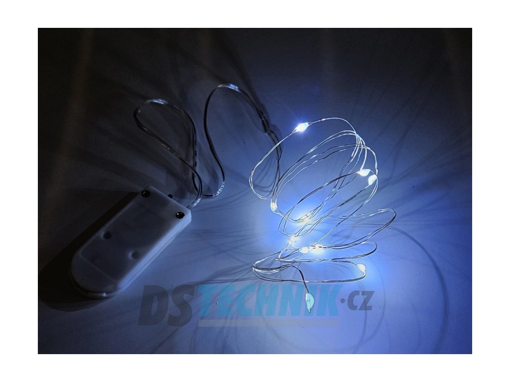 VOR-BAT 1M-D CR2032 - 1m bateriový, dekorační vánoční světelný drátový řetěz, 10x svítící LED, napájení 2x bat CR2032