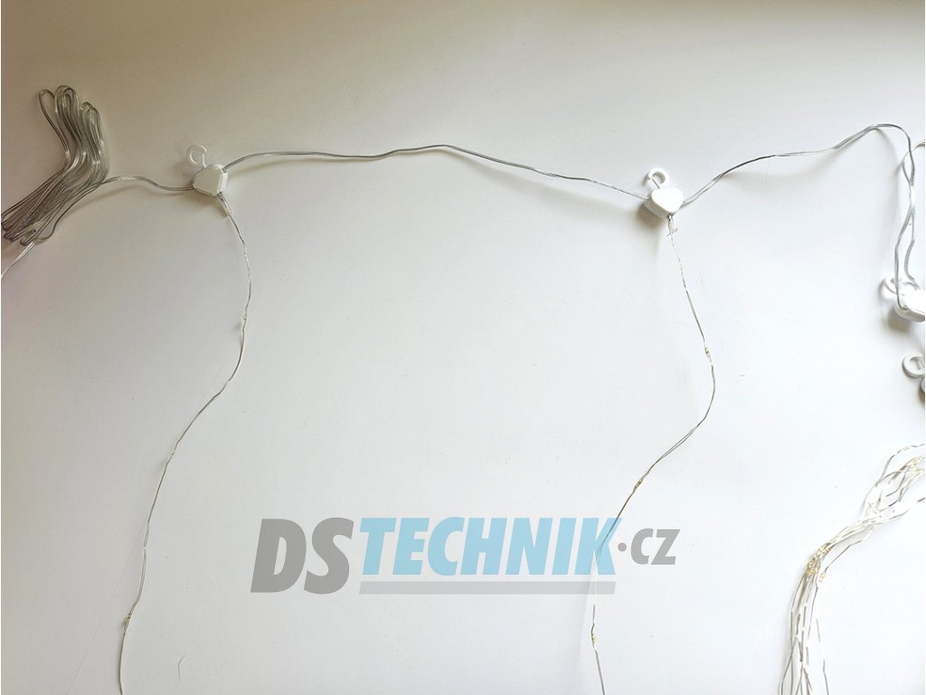 USB vánoční světelný závěs do okna, nebo-li déšť na dálkové ovládání, délka závěsu 3m s 10-ti drátovými šlahouny 1m délky se 100 mini LED diodami. Světelný závěs je na stříbrném ohebném drátu, 8 světelných programů, dálkové ovládání, výběr z barev svitu bílá studená a bílá teplá.